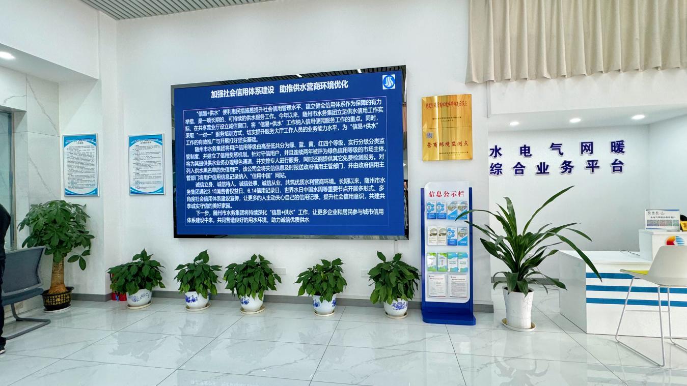隨州水務集團結合“世界水日”“中國水周”等重要節(jié)點,開展一系列供水誠信服務進社區(qū)宣傳活動,通過“水電氣”共享營業(yè)廳屏幕滾動播放宣傳視頻,還利用“隨州水務”微信公眾號、官方網站和新媒體平臺等各類宣傳途徑,宣傳供水信用服務體系建設,為推動供水信用體系建設落地落實打下堅實基礎。