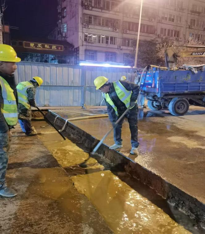 施工員和安全員組成的黨員攻堅(jiān)組連續(xù)作戰(zhàn)30個(gè)小時(shí),安全督導(dǎo)員嚴(yán)格監(jiān)測,施工噪音始終控制在55分貝以下,揚(yáng)塵數(shù)值較常規(guī)施工降低40%,真正實(shí)現(xiàn)“無聲守護(hù)”。技術(shù)團(tuán)隊(duì)創(chuàng)新應(yīng)用管道非開挖修復(fù)技術(shù),將施工面壓縮至傳統(tǒng)工藝的1/3。