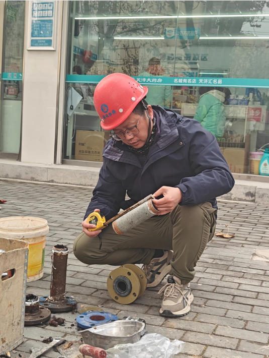 20257月,又一嚴峻考驗降臨,交通大道兩水段突發(fā)區(qū)域性停水。故障就是沖鋒號,劉吉再次主動請纓,率隊緊急出動,戶外溫度直逼40攝氏度。頂著烈日,劉吉帶領(lǐng)隊員們,沿著疑似管線段進行地毯式徒步排查,最終確定故障點位于一處橋梁下方的穿橋主管道。